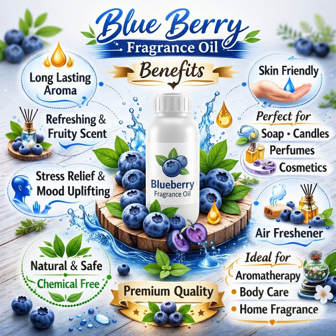 Blueberry Fragrance Oil ka use kai handmade aur home fragrance products me kiya ja sakta hai: